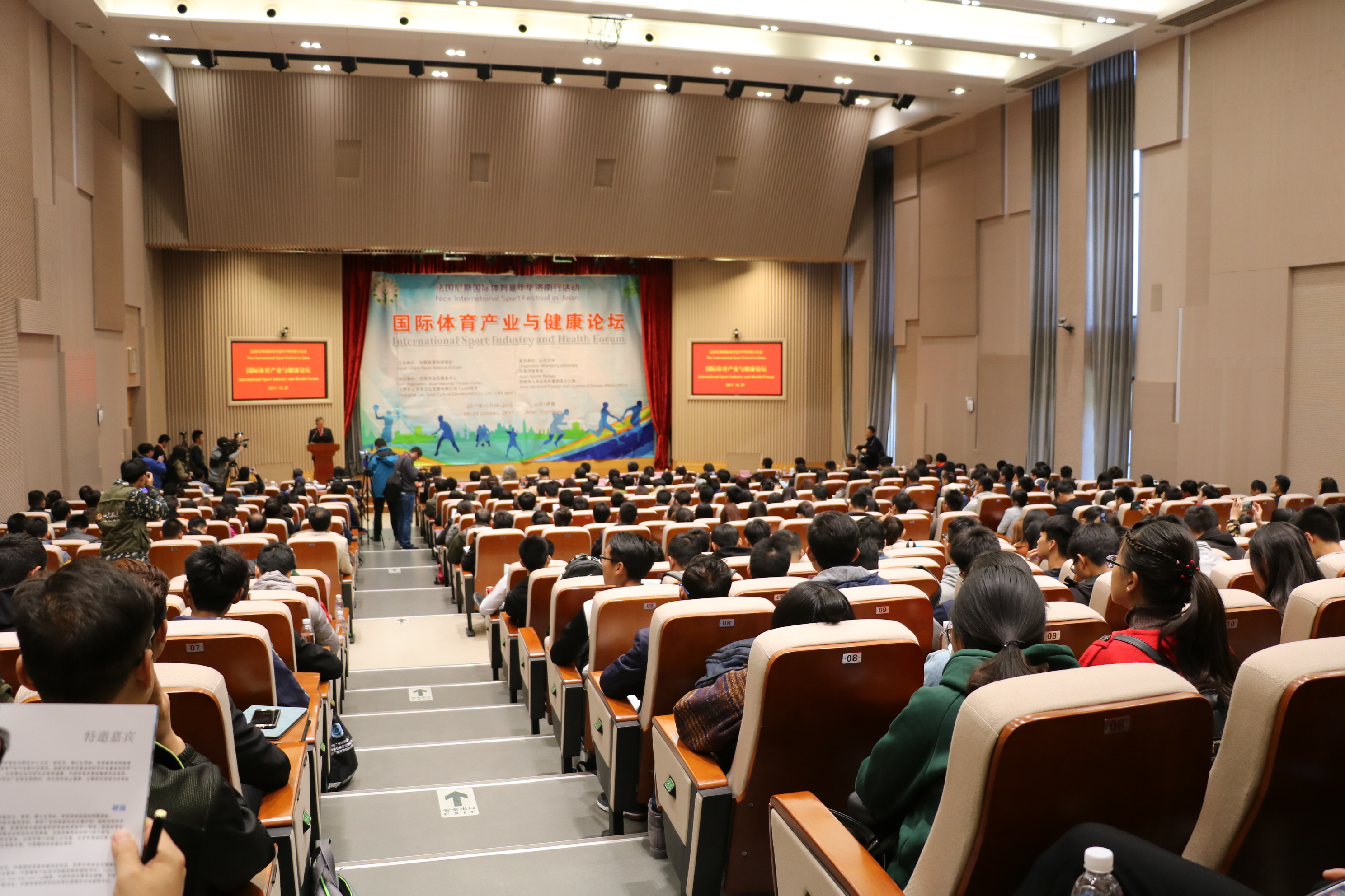 10月29日,国际体育产业与健康论坛在山东大学中心校区成功举行。济南市人大常委会副主任许强,国家体育总局科研所所长、中国体育科学学会副理事长、秘书长张良,法国尼斯市副市长周赛·科博斯(Jose Cobos)先生,法国尼斯索菲亚大学丹尼斯·帕瑞萨特(Denis PARISOT)教授,北京体育大学副校长胡杨教授,山东大学校党委副书记仝兴华教授,济南市体育局局长高立文,上海蔚兰体育文化发展有限公司(LAN体育)CEO赵海涛等领导嘉宾出席本次论坛。