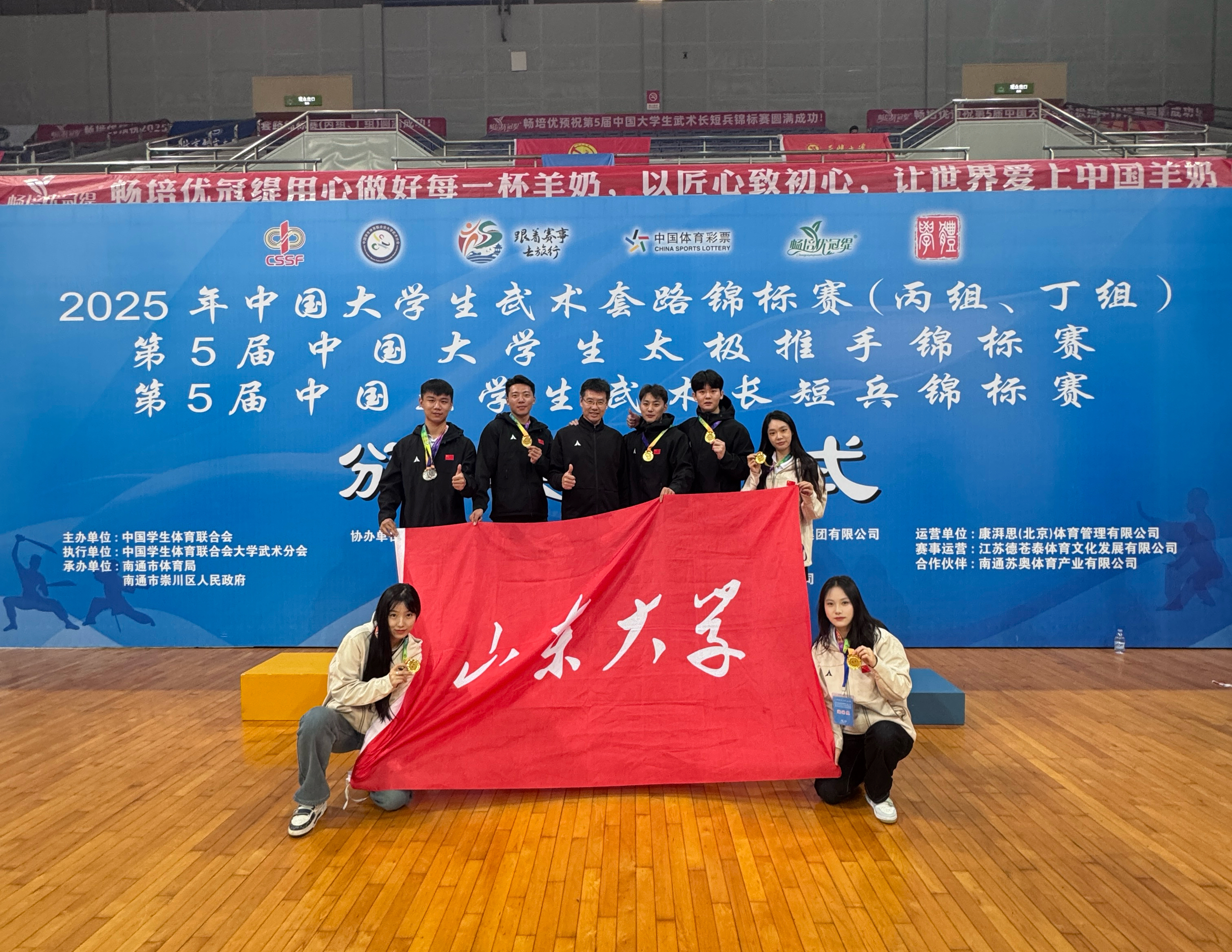 10月27日-31日,第五届中国大学生太极推手锦标赛在江苏南通举行。山东大学组建12人参赛代表团,由山东大学体育学院王飞教授带队,运动员们在赛场上挥洒汗水、奋勇拼搏,最终以6枚金牌、3枚银牌、1枚铜牌的辉煌战绩载誉而归,用实力诠释了传统武术的魅力与山大学子的昂扬风采。
