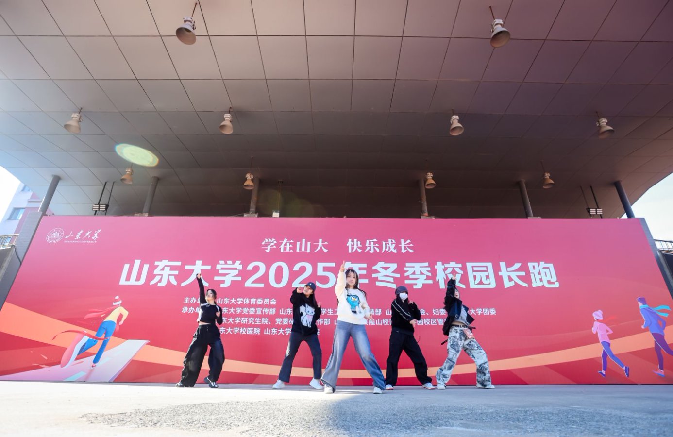 在暖场表演环节,来自山东大学街舞协会活力四射的舞蹈点燃全场,体育学院、电气工程学院、新闻传播学院的学生带来了精彩的歌曲联唱。山东大学党委副书记张帅在致辞中提到,冬季校园长跑是我校深受欢迎的传统体育活动,也是一堂生动深刻的“行走的课堂”,山大非常重视校园体育活动,举办三山五岳、校园荧光跑等系列活动。希望广大师生在体育锻炼中享受乐趣、增强体质、健全人格、锤炼意志。全国健美操冠军、体育学院教师于颖丹妮带领大家进行充分热身,为赛事安全顺利开展做好准备。