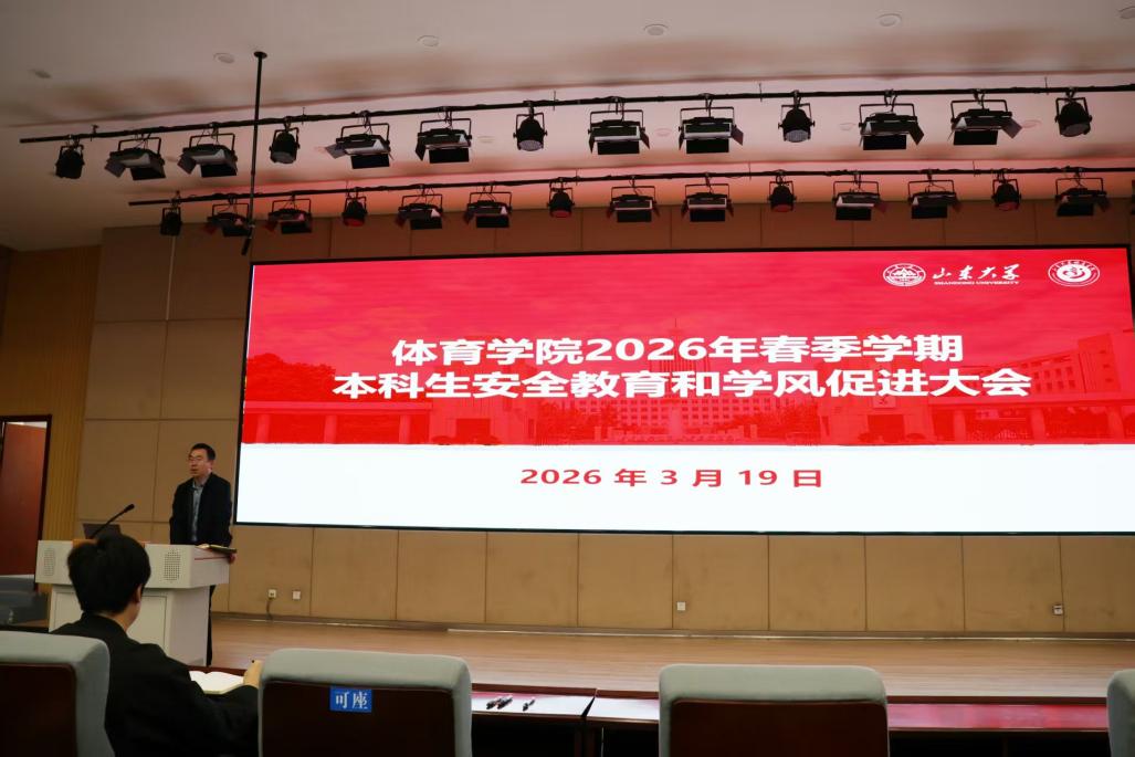 3月19日,体育学院组织召开2026年春季学期本科生安全教育和学风促进大会。学院团委书记、辅导员范泽斌老师和辅导员张腾、成晓洋老师以及学院本科生参加会议,会议由范泽斌老师主持。