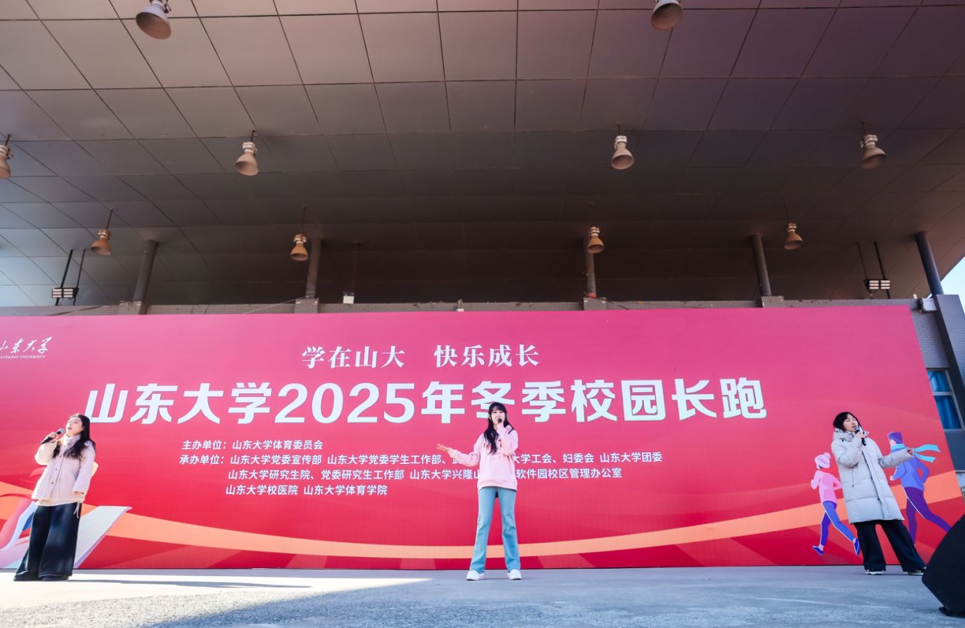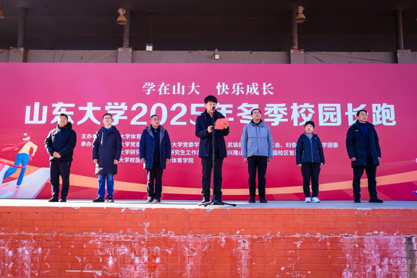 在暖场表演环节,来自山东大学街舞协会活力四射的舞蹈点燃全场,体育学院、电气工程学院、新闻传播学院的学生带来了精彩的歌曲联唱。山东大学党委副书记张帅在致辞中提到,冬季校园长跑是我校深受欢迎的传统体育活动,也是一堂生动深刻的“行走的课堂”,山大非常重视校园体育活动,举办三山五岳、校园荧光跑等系列活动。希望广大师生在体育锻炼中享受乐趣、增强体质、健全人格、锤炼意志。全国健美操冠军、体育学院教师于颖丹妮带领大家进行充分热身,为赛事安全顺利开展做好准备。