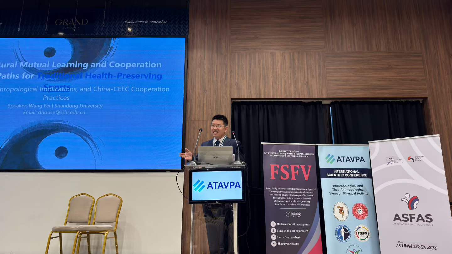 会议期间,王飞教授代表中方主办单位出席开幕式并作大会报告,介绍了中国—中东欧国家高校联合会及体育学学科建设共同体的建设成果与合作规划。中方团队与塞尔维亚、保加利亚、罗马尼亚等多国高校、体育学院及研究机构开展深入交流,围绕联合科研、师生互访、合作办会、成果发表等达成多项合作意向,进一步夯实了中国—中东欧体育教育合作的机制与平台。